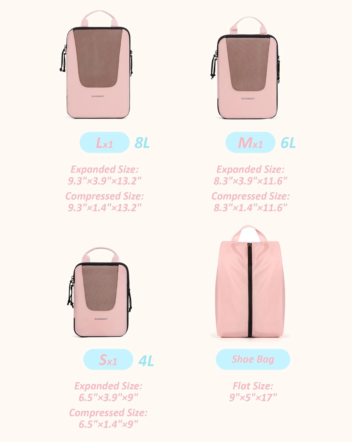 Introducing the ultimate solution for efficient and organized packing – Compression Packing Cubes! Say goodbye to messy suitcases and hello to stress-free travel with our 6-piece set of travel packing organizers.
